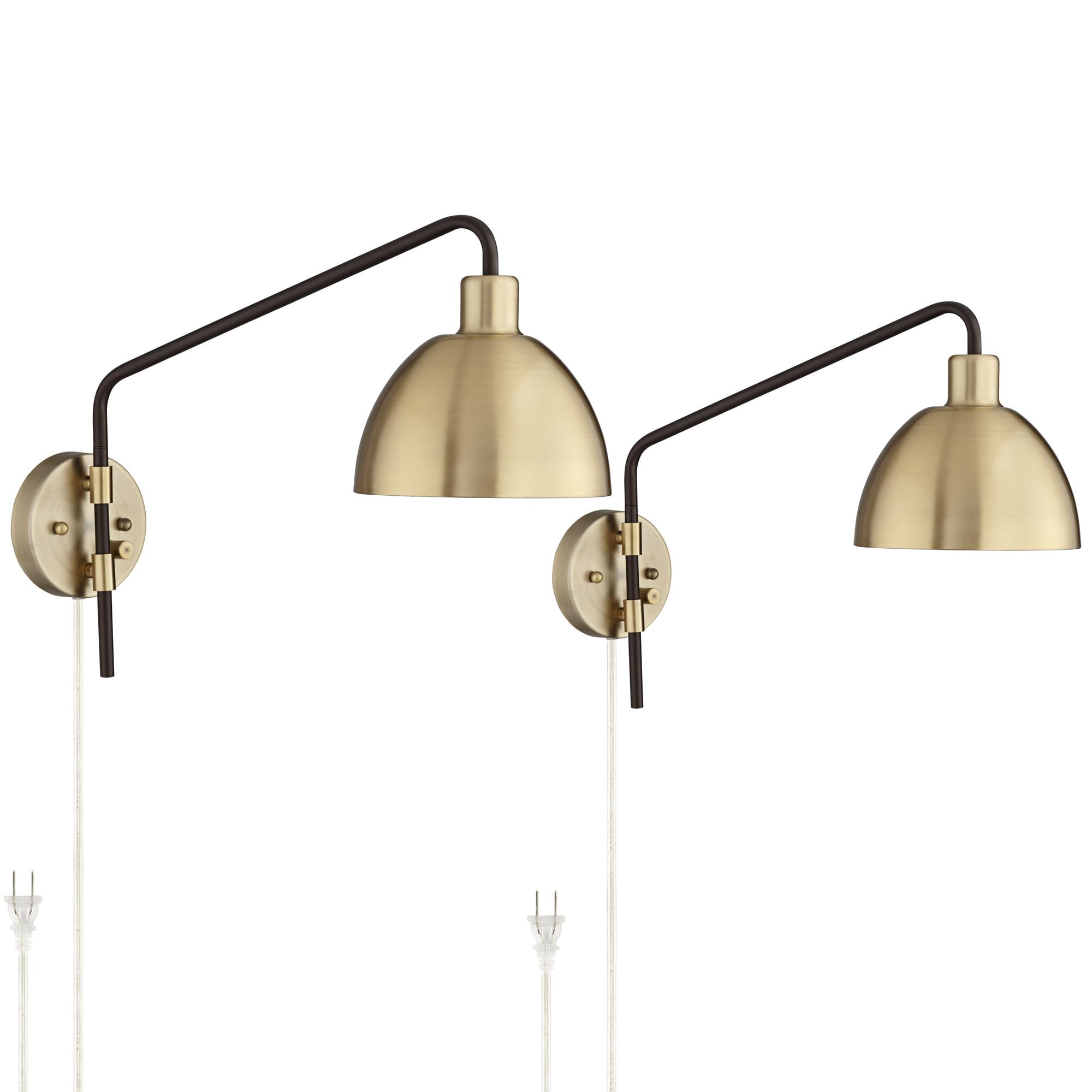 360 Lighting Colwood Antique Brass And Bronze Plug In Swing Arm Wall Lamps Set Of 2 Walmart Com